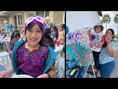 Being early November, Art Ambassador proposed a morning of kite-building for the children. Elaborate barriletes seemed too complicated, so the traditional diamond shape kite called a cometa was chosen. Several dozen children from the village showed up that morning and eagerly crowded around the visiting artists. With donated supplies, and amusing gestures, the artists demonstrated how they might festoon their kite, all the time encouraging free choices by the young kite builders. Their kites were stunning! The use of colors, patterns, lines, and images was impressive. Even more, their absolute lack of inhibition was inspiring. Every child opened their imaginations and proudly created a masterpiece.